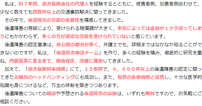 こちらの無料診断サービスや、当法人に交通事故のご相談をいただいた場合は、事故案件を集中的に取り組んでいる弁護士が対応させていただきます。